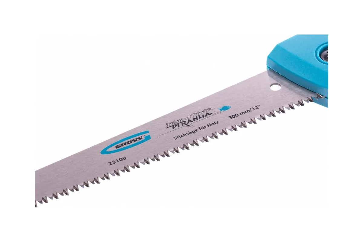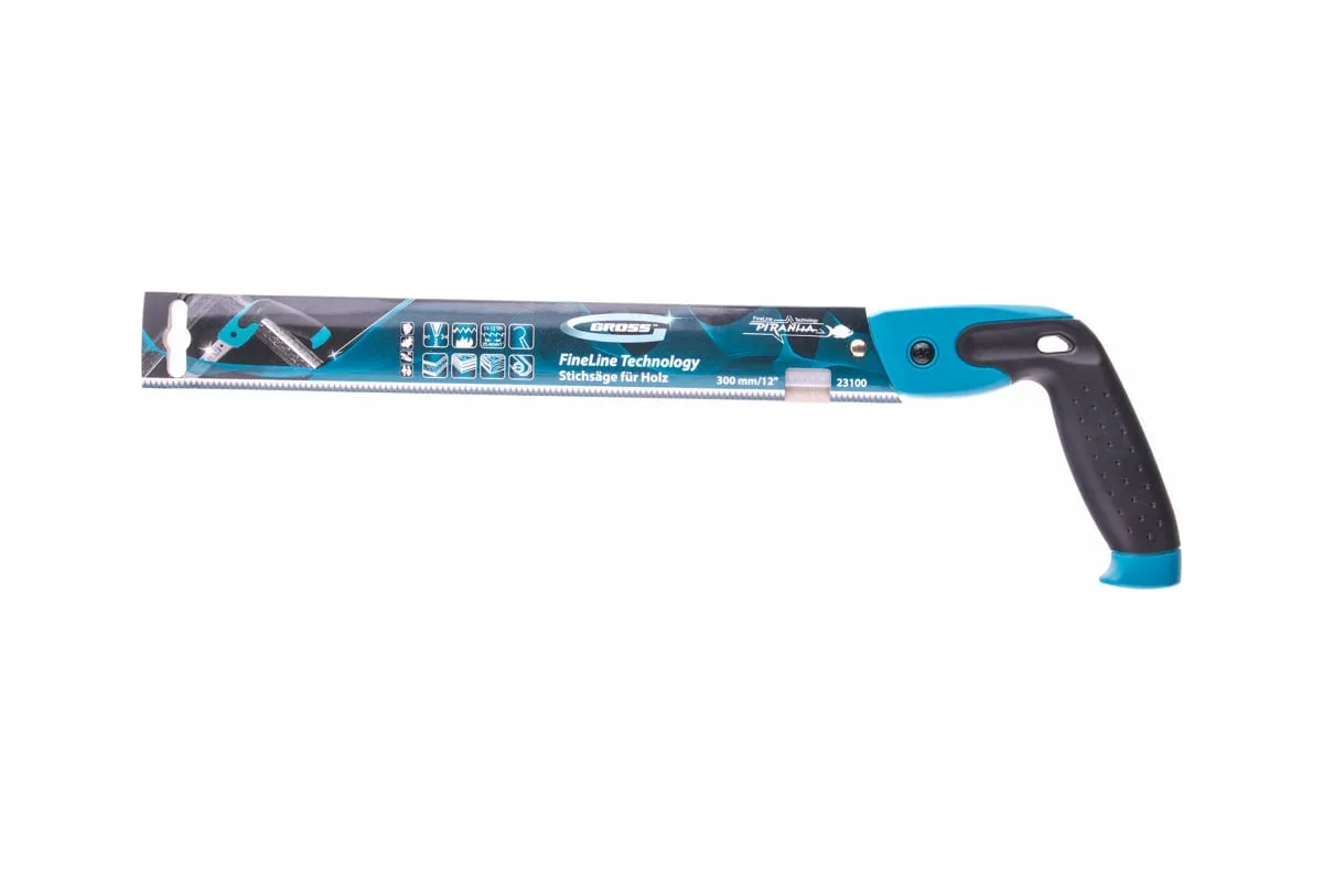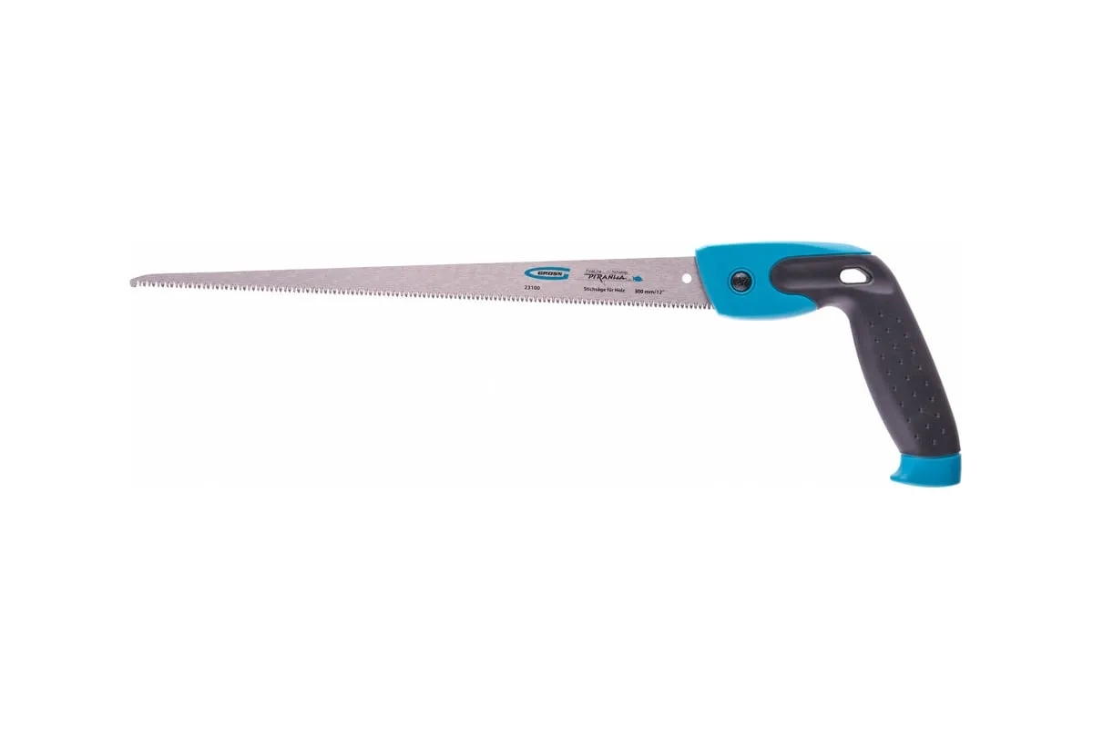 Выкружная ножовка по дереву Gross PIRANHA 23100, 300 мм / 12 дюймов, 11-12 TPI, с каленым зубом 3D и двухкомпонентной рукояткой, предназначена для криволинейного реза листовых заготовок из фанеры, ДСП, ДВП, ламината, МДФ, а также пенополистирола и полиуретана. Мелкие зубья с шагом 11-12 TPI обеспечивают ровный рез без сколов. Благодаря тонкому маневренному полотну удается придерживаться заданного контура при распиловке. Ножовку используют при выполнении профессиональных столярных работ.