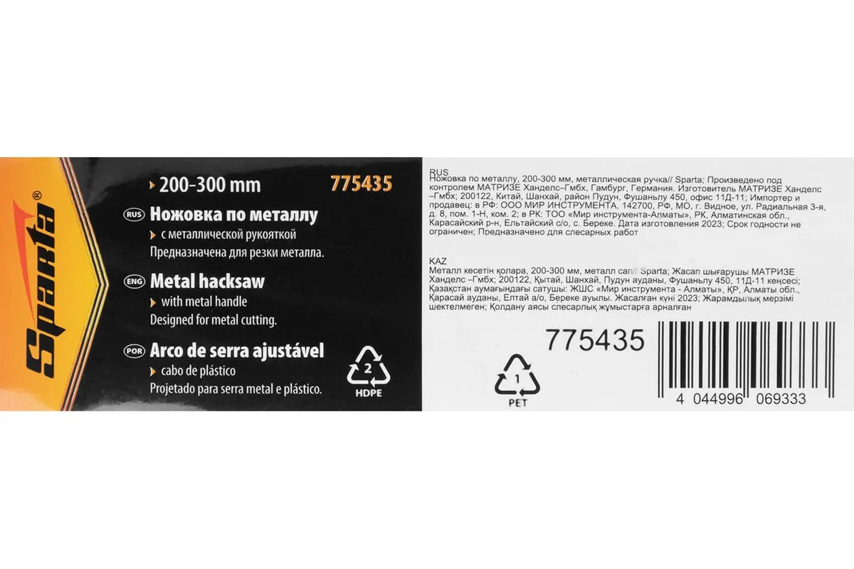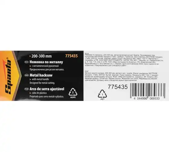 Ножовка по металлу 200-300 мм SPARTA 775435 предназначена специально для проведения слесарно-монтажных работ и для распиливания металла, ДСП, ПВХ, пластмассы и ламината. Рама выполнена из штампованной стали с хромовым покрытием для высокой прочности конструкции и защиты от коррозии.