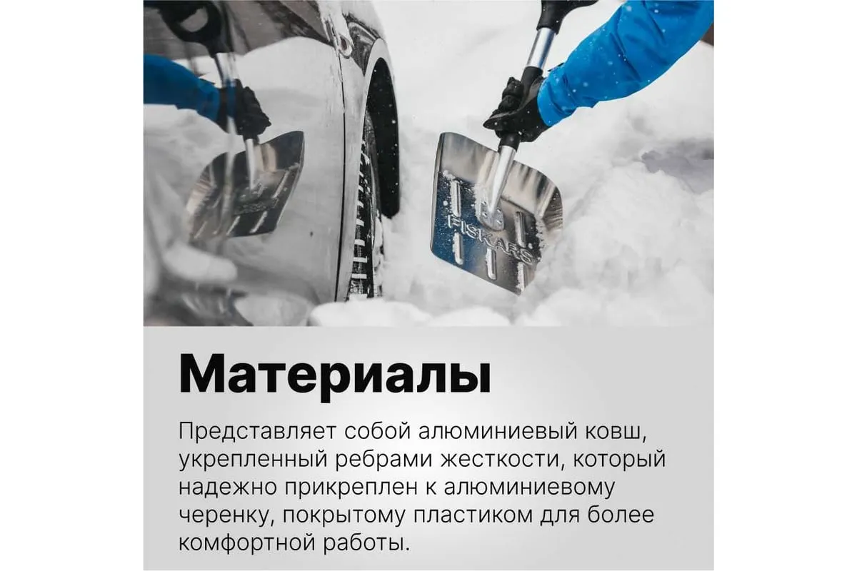 Облегченная лопата для автомобиля Fiskars 1000740 имеет оптимальные габариты для перевозки инструмента в багажнике. Модель удобна в использовании и не изгибается из-за дополнительных ребер жесткости.