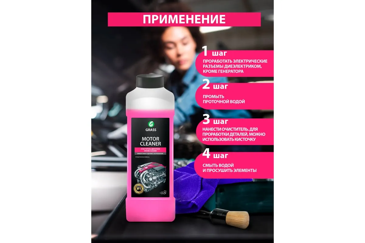 Очиститель двигателя Grass Motor Cleaner 1 л 116100 применяется для наружной очистки подкапотного пространства (двигателя и его частей) от масляных пятен, подтеков смазки, налипшей пыли и других загрязнений. Мощная щелочная формула позволяет очистить даже самые застарелые загрязнения.