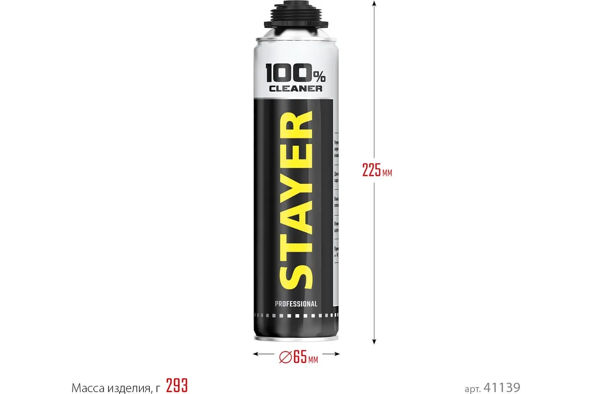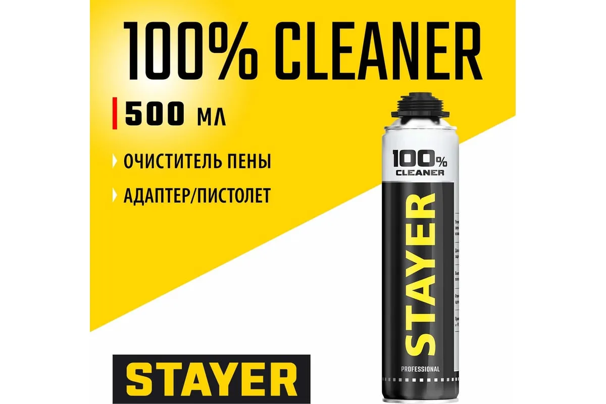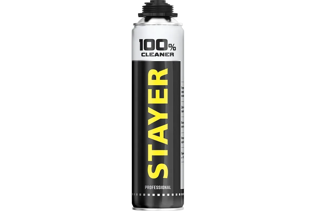 Очиститель монтажной пены STAYER Professional 500 мл 41139 полностью удаляет незастывшую монтажную пену с пистолета, кожаных и других поверхностей, не царапая покрытие. Для прочистки пистолета после работы на него необходимо установить баллон и несколько раз нажать курок. Подходит для профессионалов.Не содержит фреона, безопасен для окружающей среды.