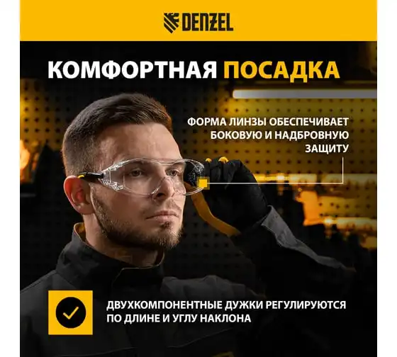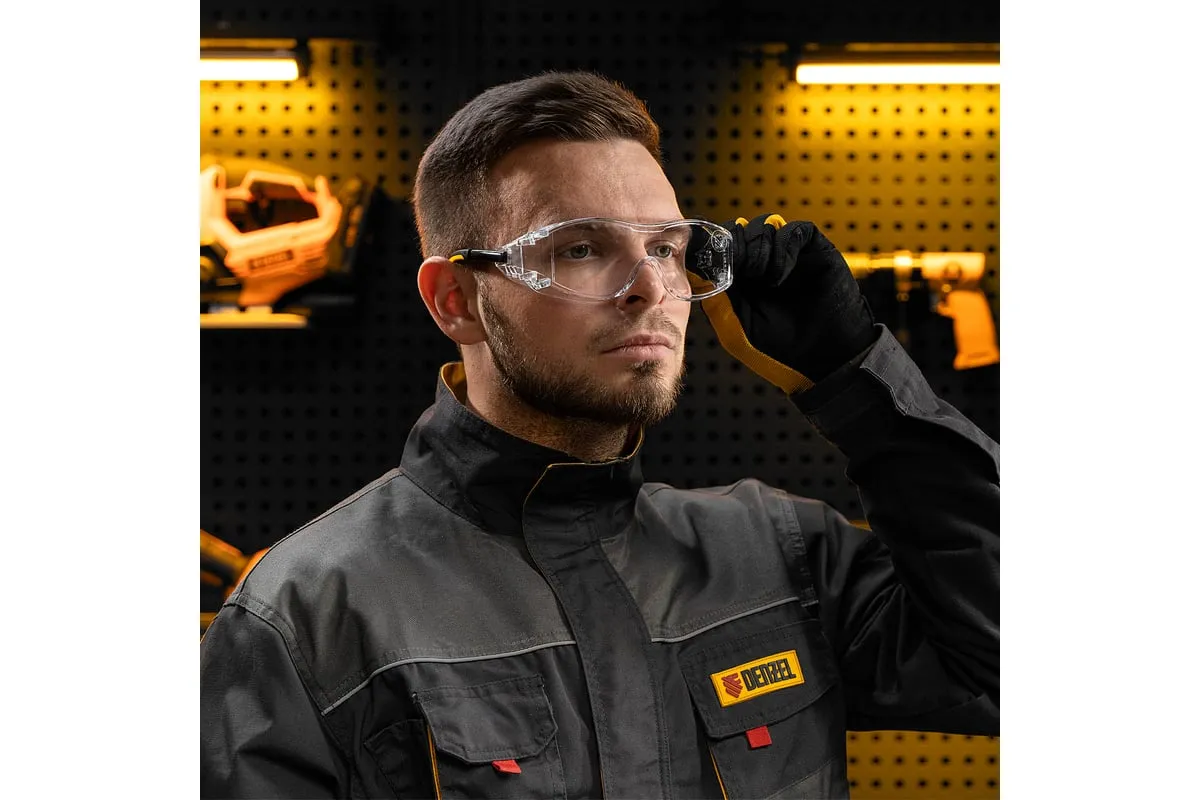 Легкие универсальные очки используются во время работы с электро- и бензоинструментом, на производстве и в быту.