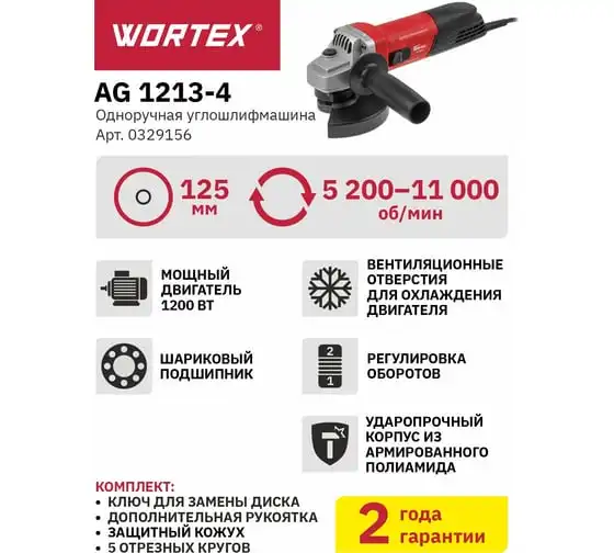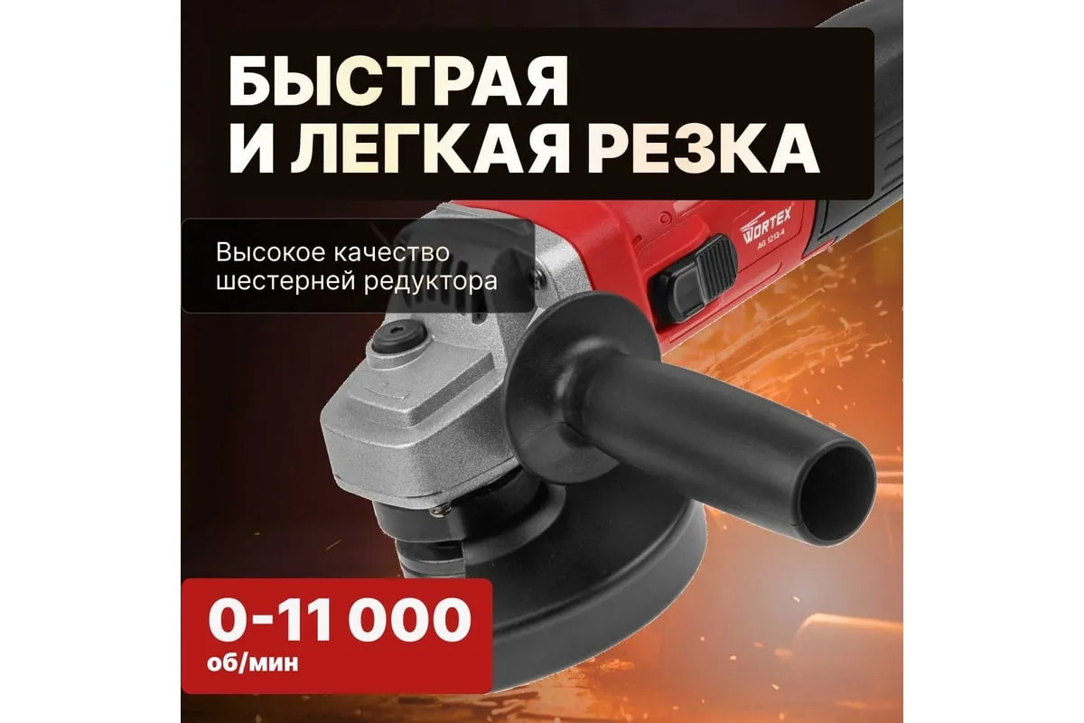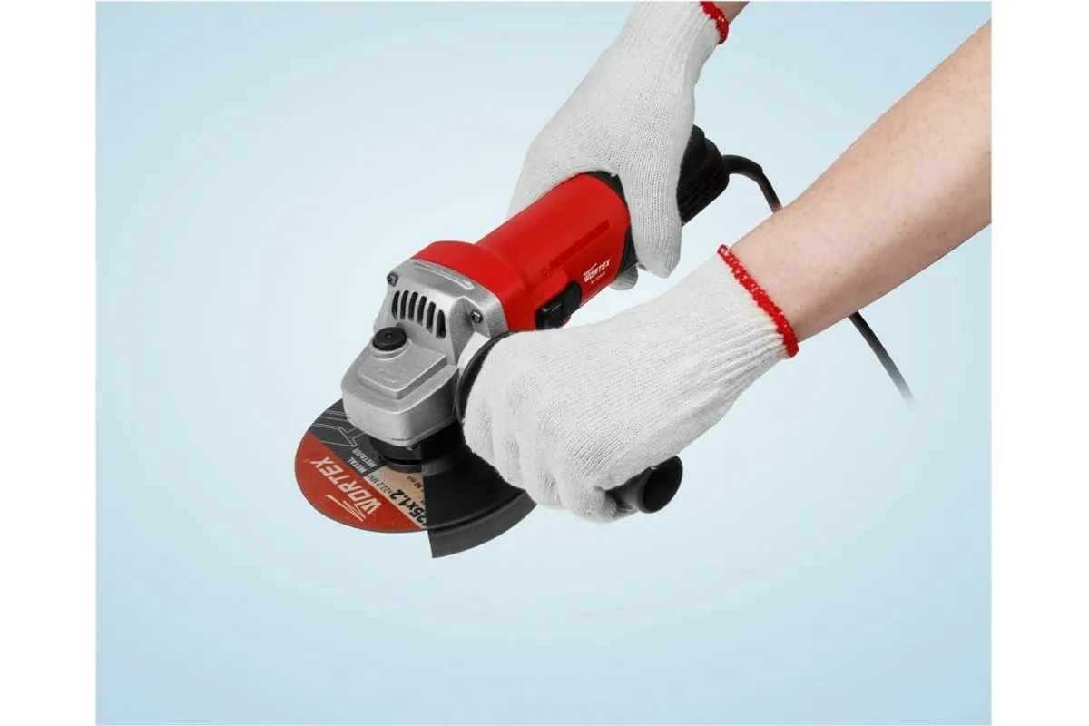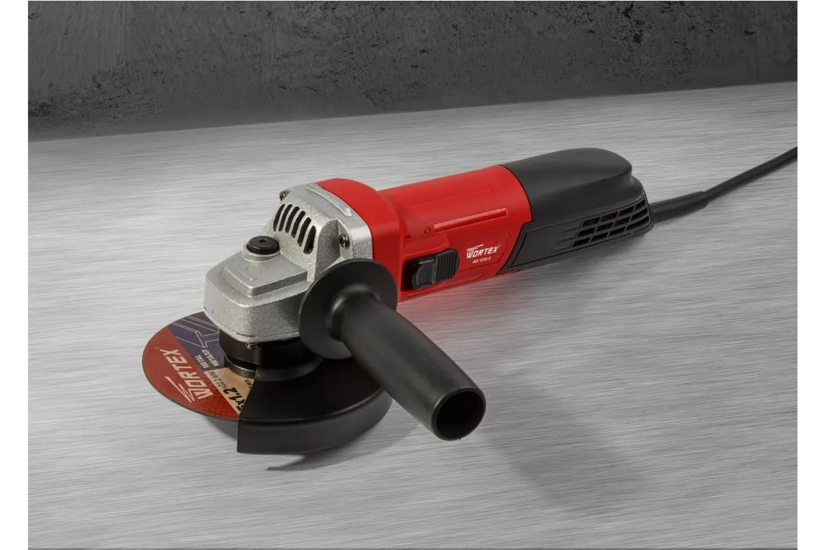 Одноручная углошлифмашина WORTEX AG 1213-4 0329156 используется в строительстве и ремонте.