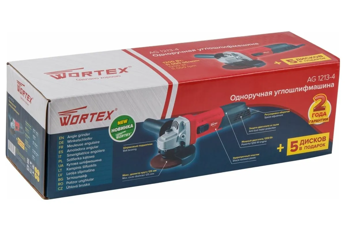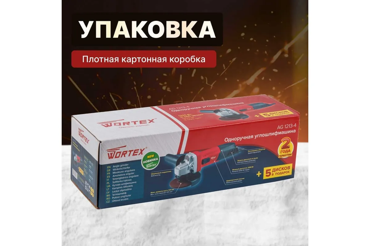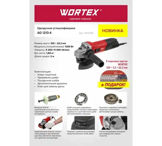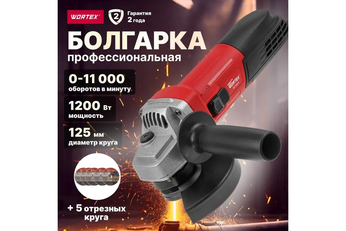 Одноручная углошлифмашина WORTEX AG 1213-4 0329156 используется в строительстве и ремонте.