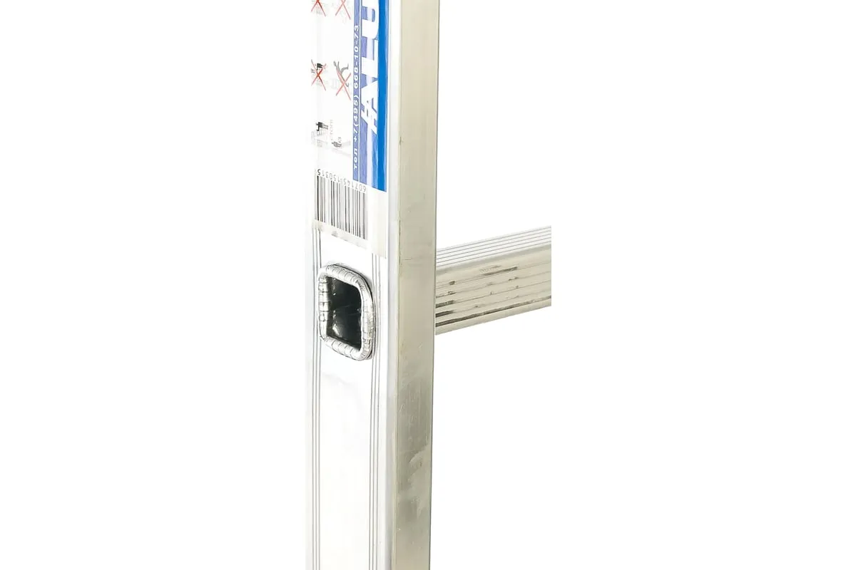 Тетивы и ступени лестницы изготовлены из высокопрочного алюминиевого сплава (ГОСТ 22233), обеспечивающего изделию прочность и легкость, что важно для транспортировки и установки.