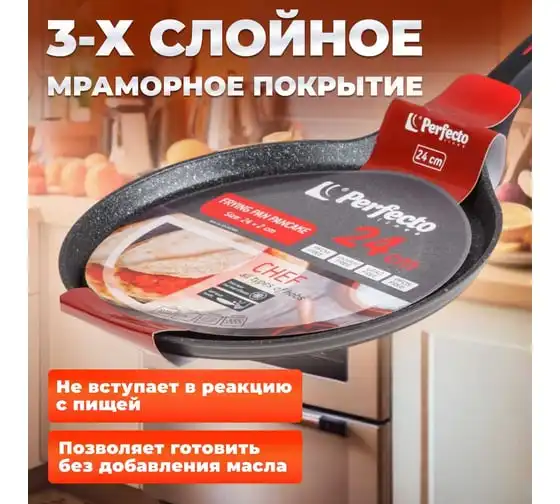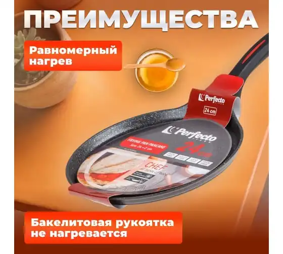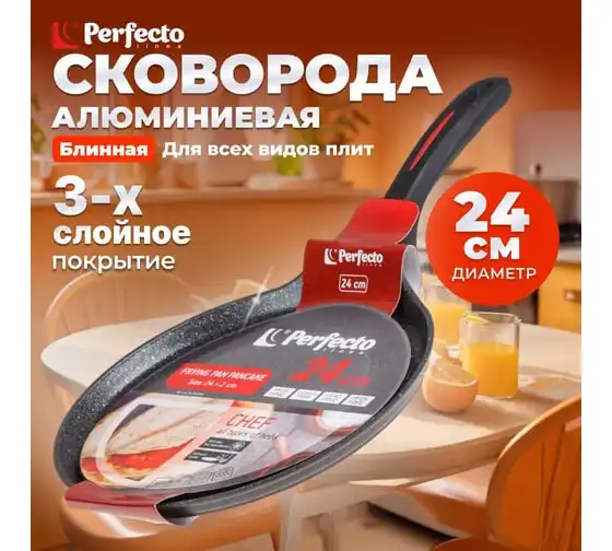 Блинная сковорода PERFECTO LINEA 24x2.0 см, алюминий антипригарное покрытие, для индукционных плит, серия CHEF 55-242100