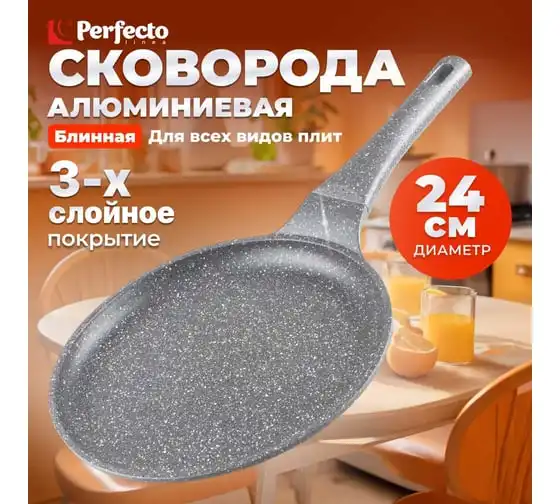 Блинная сковорода PERFECTO LINEA диаметр 24x2 см, алюминий, антипригарное покрытие, для индукционных плит, серия Hardy Plus 55-242101