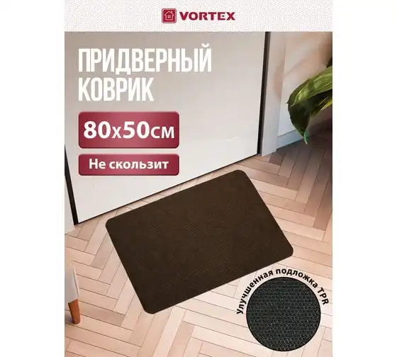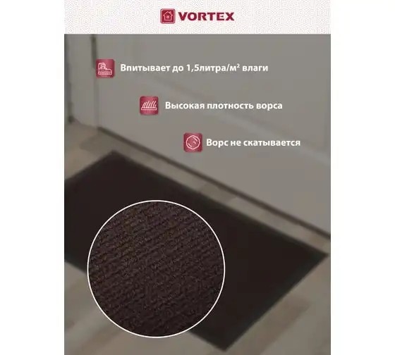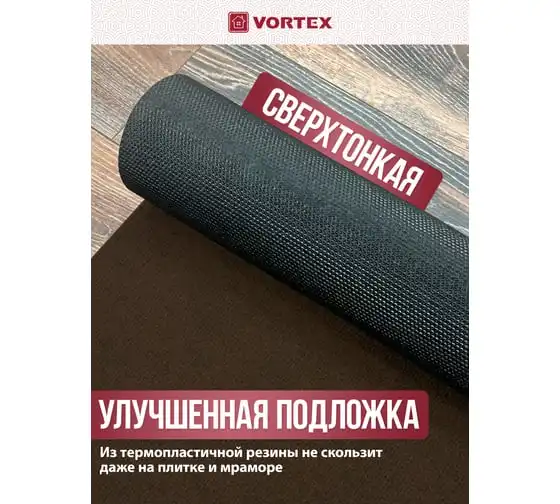Коврик влаговпитывающий Vortex ребристый "Slim", без борта, подложка tpr, 50х80 см, коричневый 24387