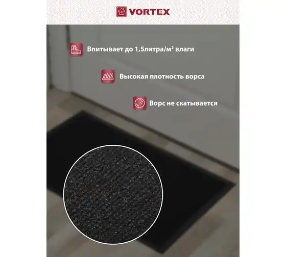 Влаговпитывающий ребристый коврик VORTEX TRIP 40х60 см, чёрный 24190