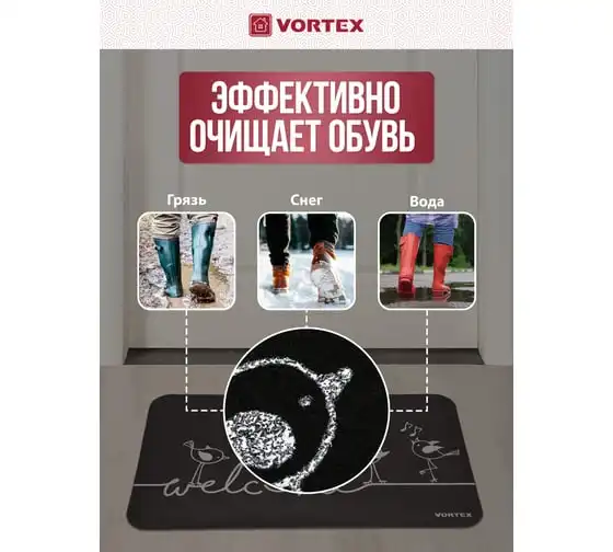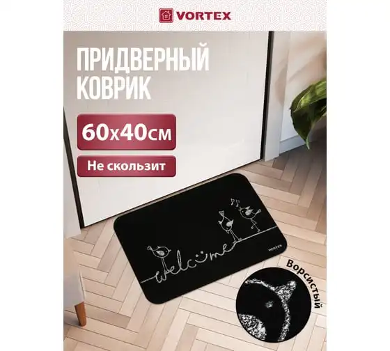 Коврик придверный Vortex "Welcome", птицы 40*60см, 24 24401