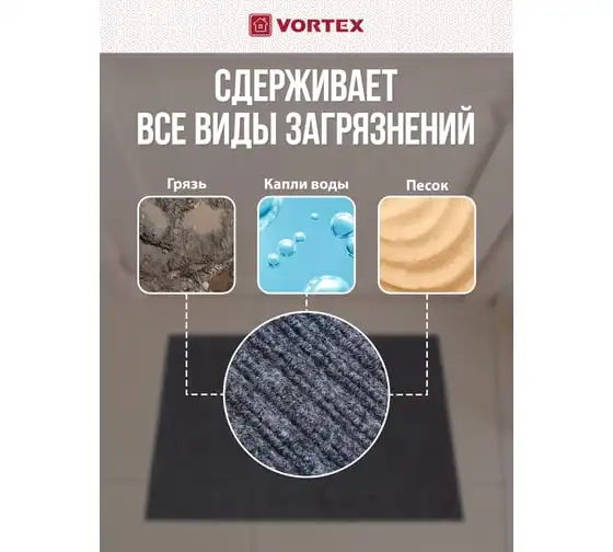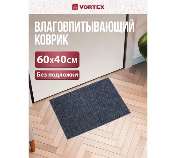 Придверный коврик VORTEX Simple 40х60 см, серый 22306