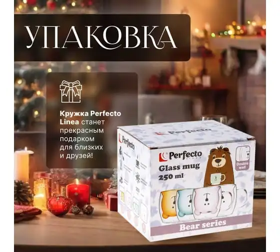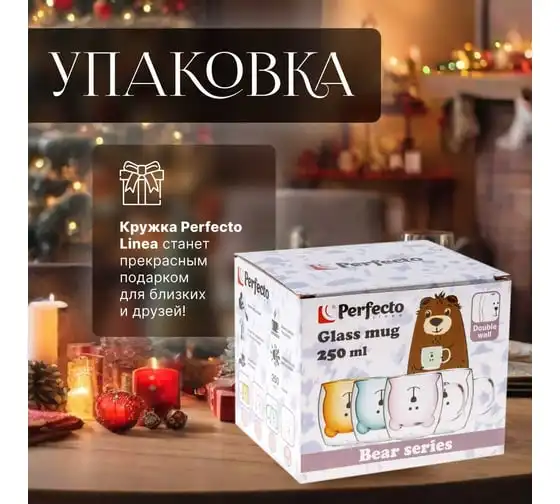 Стеклянная кружка PERFECTO LINEA Bear с двойными стенками, 250 мл 30-125201