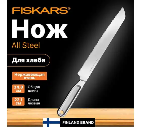 Нож для хлеба FISKARS 22 см, цельнометаллический, All Steel 1062883