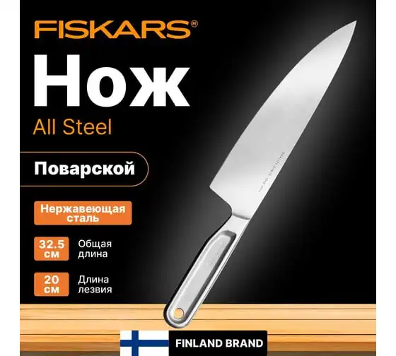 Нож поварской FISKARS 20 см, цельнометаллический, All Steel 1062882