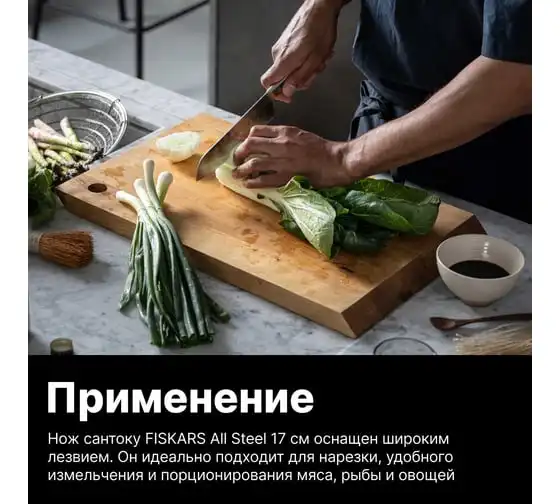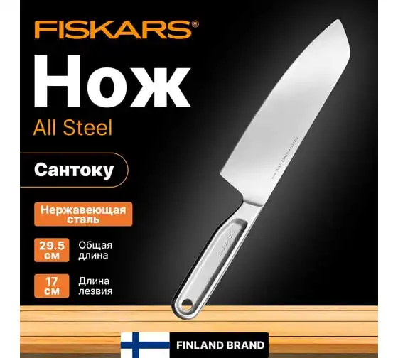 Нож сантоку FISKARS 17 см, цельнометаллический, All Steel 1062884