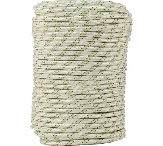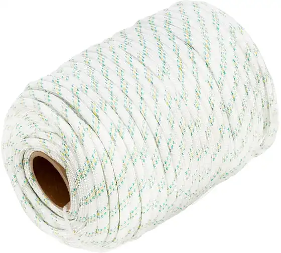 Плетеный 16-прядный капроновый фал с сердечником 6мм, бухта 100м, 650кгс СИБРТЕХ Россия 93969