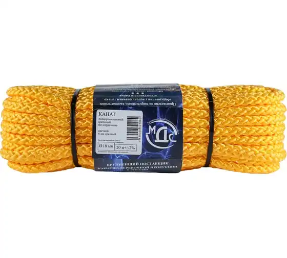 Полипропиленовый канат ТОРГОВО-ПРОИЗВОДСТВЕННАЯ КОМПАНИЯ МДС, плетеный, 10 мм, 8 пр, 20 м 7930050321080