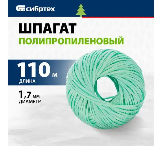 Полипропиленовый шпагат СИБРТЕХ зеленый, 110 м, 1200 текс Россия 93980