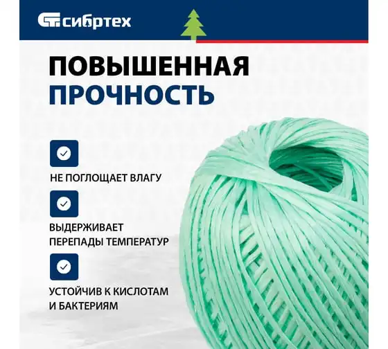 Полипропиленовый шпагат СИБРТЕХ зеленый, 400 м, 1200 текс Россия 93984