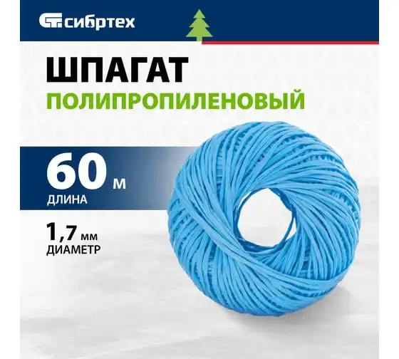 Полипропиленовый шпагат, синий, 60м, 1200текс СИБРТЕХ Россия 93973