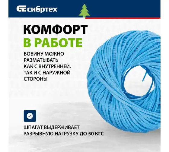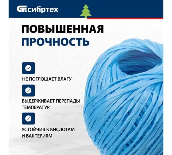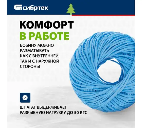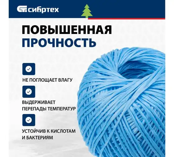 Полипропиленовый шпагат СИБРТЕХ синий, 400 м, 1200 текс Россия 93981