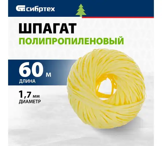 Полипропиленовый шпагат, желтый, 60м, 1200текс СИБРТЕХ Россия 93974