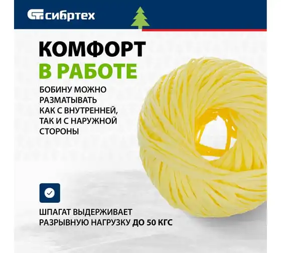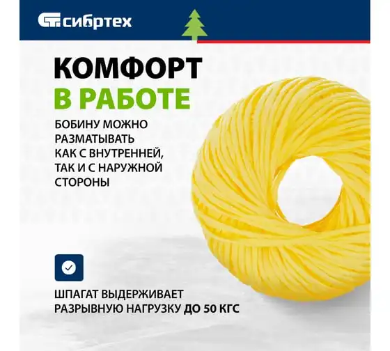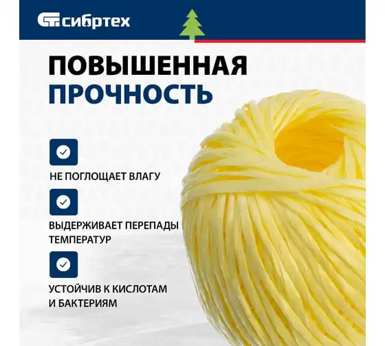 Полипропиленовый шпагат СИБРТЕХ желтый, 500 м, 800 текс Россия 93995