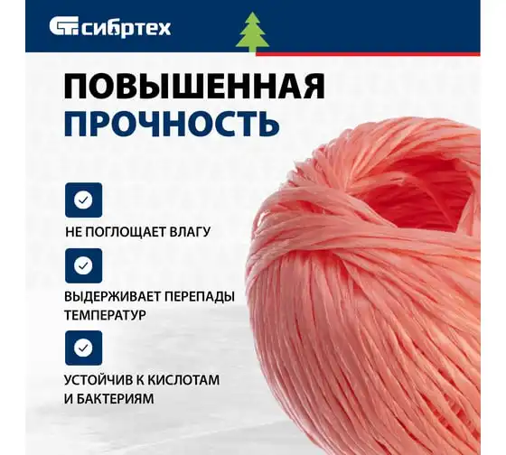 Полипропиленовый шпагат СИБРТЕХ красный, 400 м, 1200 текс Россия 93983