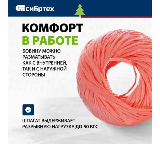 Полипропиленовый шпагат 500 м, 800 текс, 35 кгс СИБРТЕХ 93949