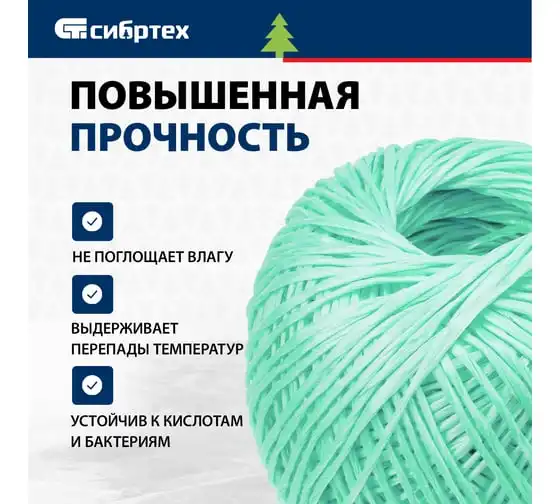 Полипропиленовый шпагат СИБРТЕХ зеленый, 500 м, 800 текс Россия 93997