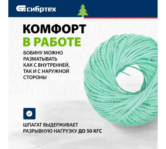 Полипропиленовый шпагат СИБРТЕХ синий, 500 м, 800 текс Россия 93994