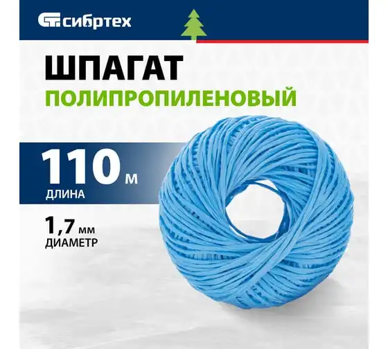 Полипропиленовый шпагат, синий, 110м, 1200текс СИБРТЕХ Россия 93977