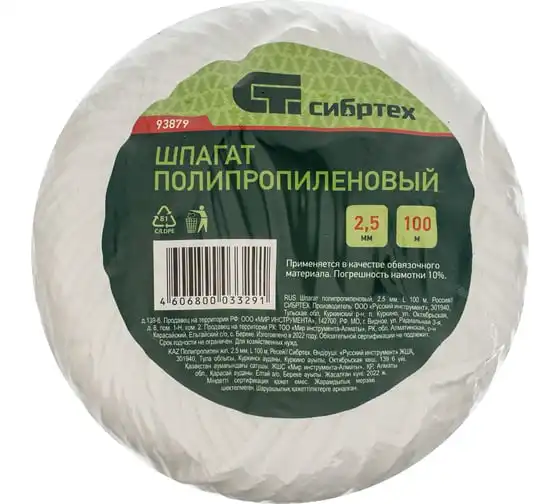 Полипропиленовый шпагат 100 м, 1600 текс, 60 кгс СИБРТЕХ 93879