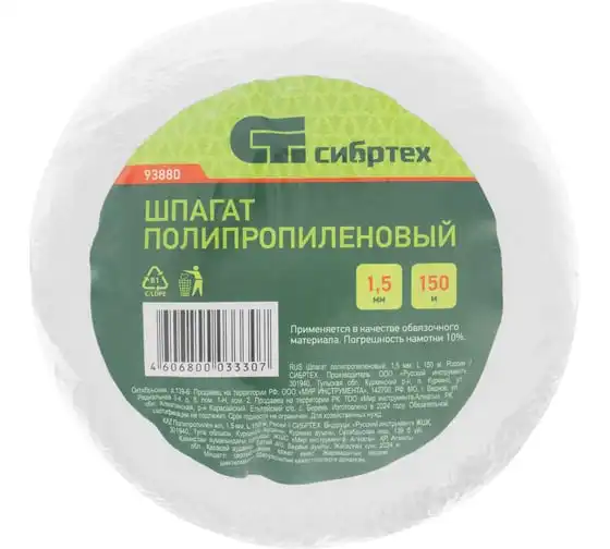 Полипропиленовый шпагат 150 м, 800 текс, 35 кгс СИБРТЕХ 93880