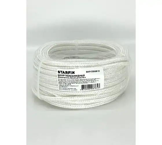 Полиамидный шнур STARFIX 6 мм, белый моток, 10 м SMP-73068-10