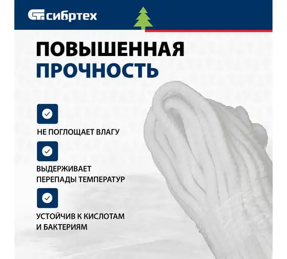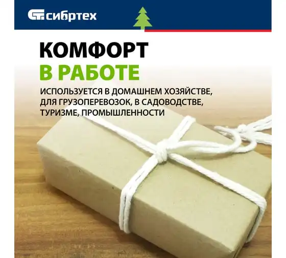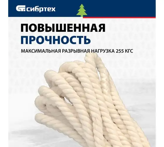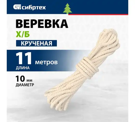 Х/б веревка СИБРТЕХ D 12 мм, L 11 м, крученая, 299 кгс Рос 94002