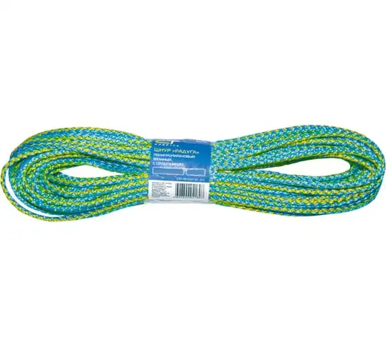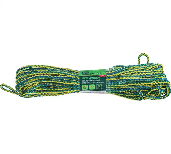 Вязаный полипропиленовый шнур с сердечником 8мм, 20м, 140-150кгс СИБРТЕХ Радуга Россия 93955