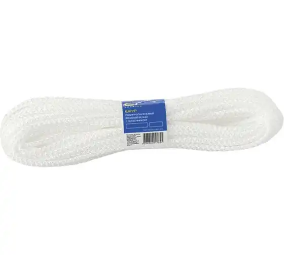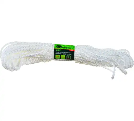 Полипропиленовый вязаный шнур с сердечником, белый, 6мм, 20м, 180-200кгс СИБРТЕХ Россия 93959
