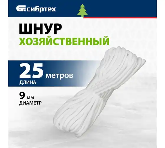 Хозяйственный полиэфирный шнур 9мм, 25м СИБРТЕХ Рос 93801