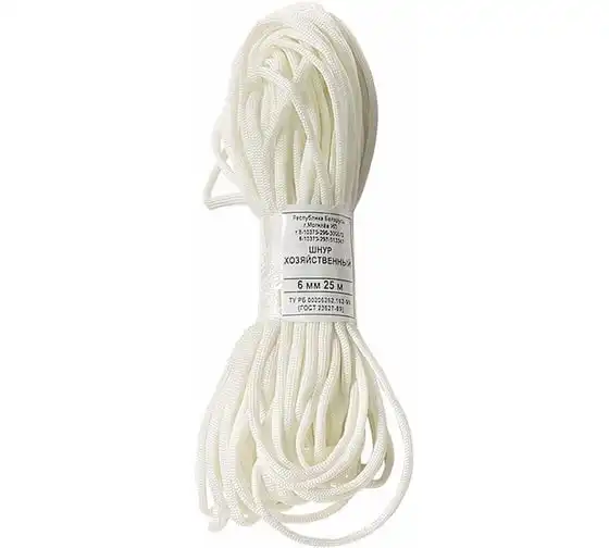 Хозяйственный шнур, D 6 мм, L 25 м, полиэфирный СИБРТЕХ Рос 93819
