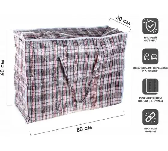 Сумка хозяйственная PERFECTO LINEA на молнии, в клетку, 80x60x30 см 42-806030