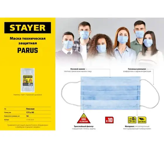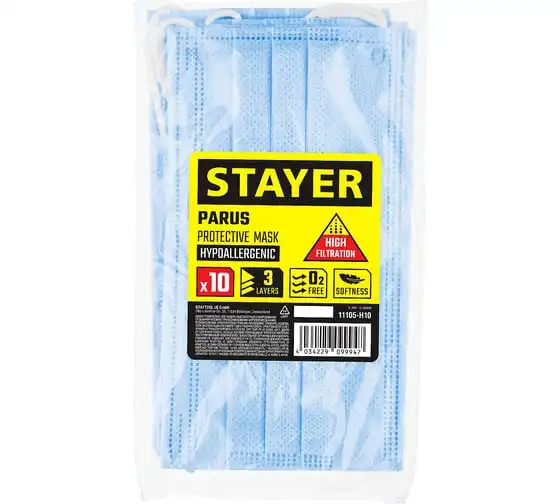 Техническая маска STAYER Parus трехслойная 10 шт. 11105-H10