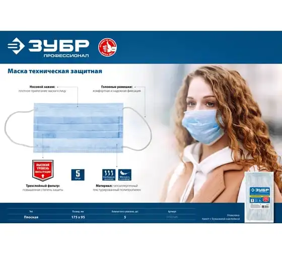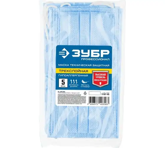Трехслойная маска Зубр 5 шт техническая защитная 11107-H5