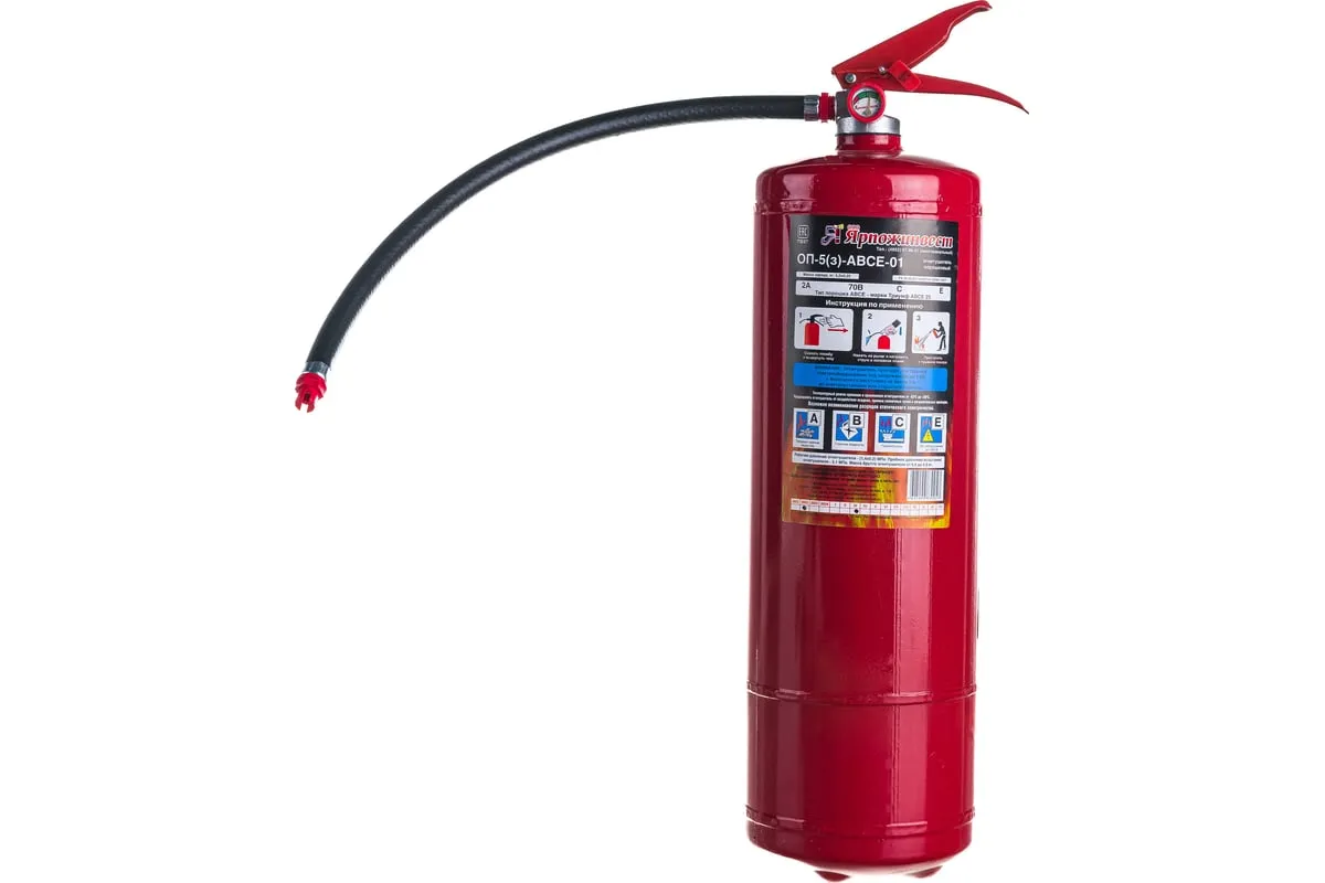 Огнетушитель Ярпожинвест ОП-5 з АВСЕ служит для тушения пожаров при возгорании твердых, жидких и газообразных горючих веществ. Также огнетушитель подходит для тушения электроприборов, находящихся под напряжением до 1000 В. Изделие широко применяется для оборудования складов, предприятий, мастерских, офисов и т. д.