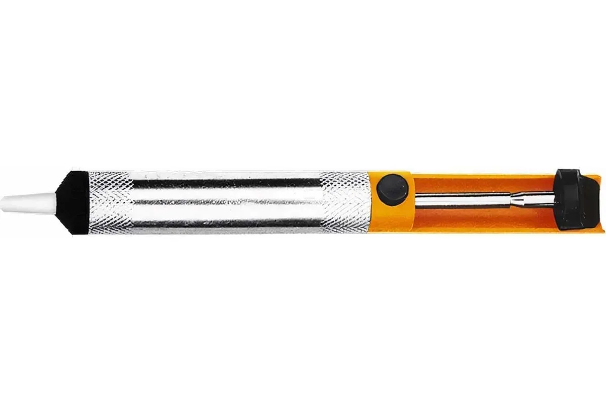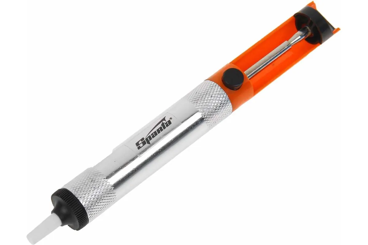 Паяльный металлический оловоотсос Sparta 913265 применяется при работе с микросхемами. Он удаляет остатки припоя и позволяет аккуратно извлекать микросхемы без потери их работоспособности. Ручной инструмент имеет простую конструкцию, удобную в эксплуатации, поэтому пригодится профессионалам и неопытным мастерам.