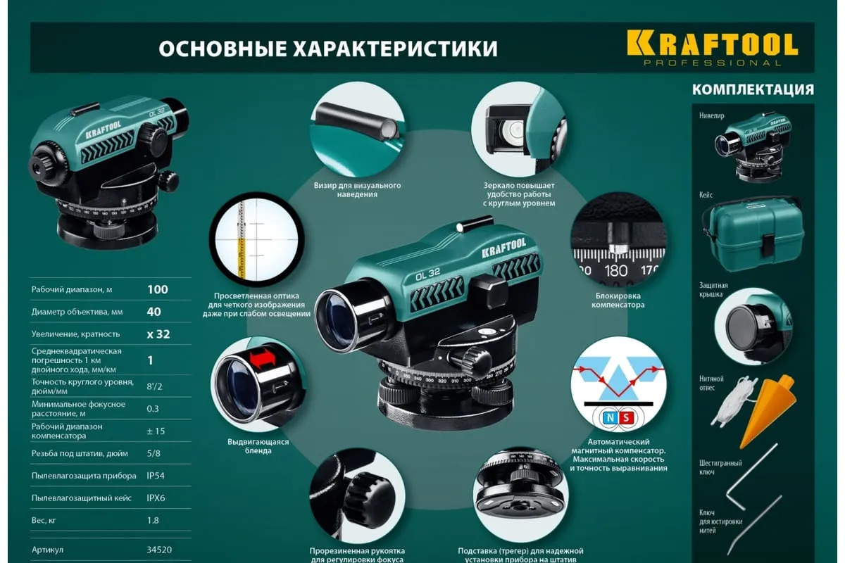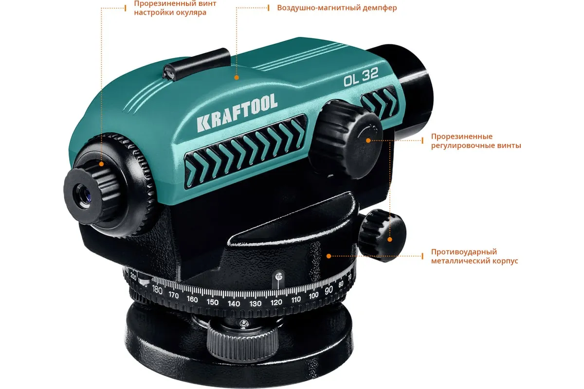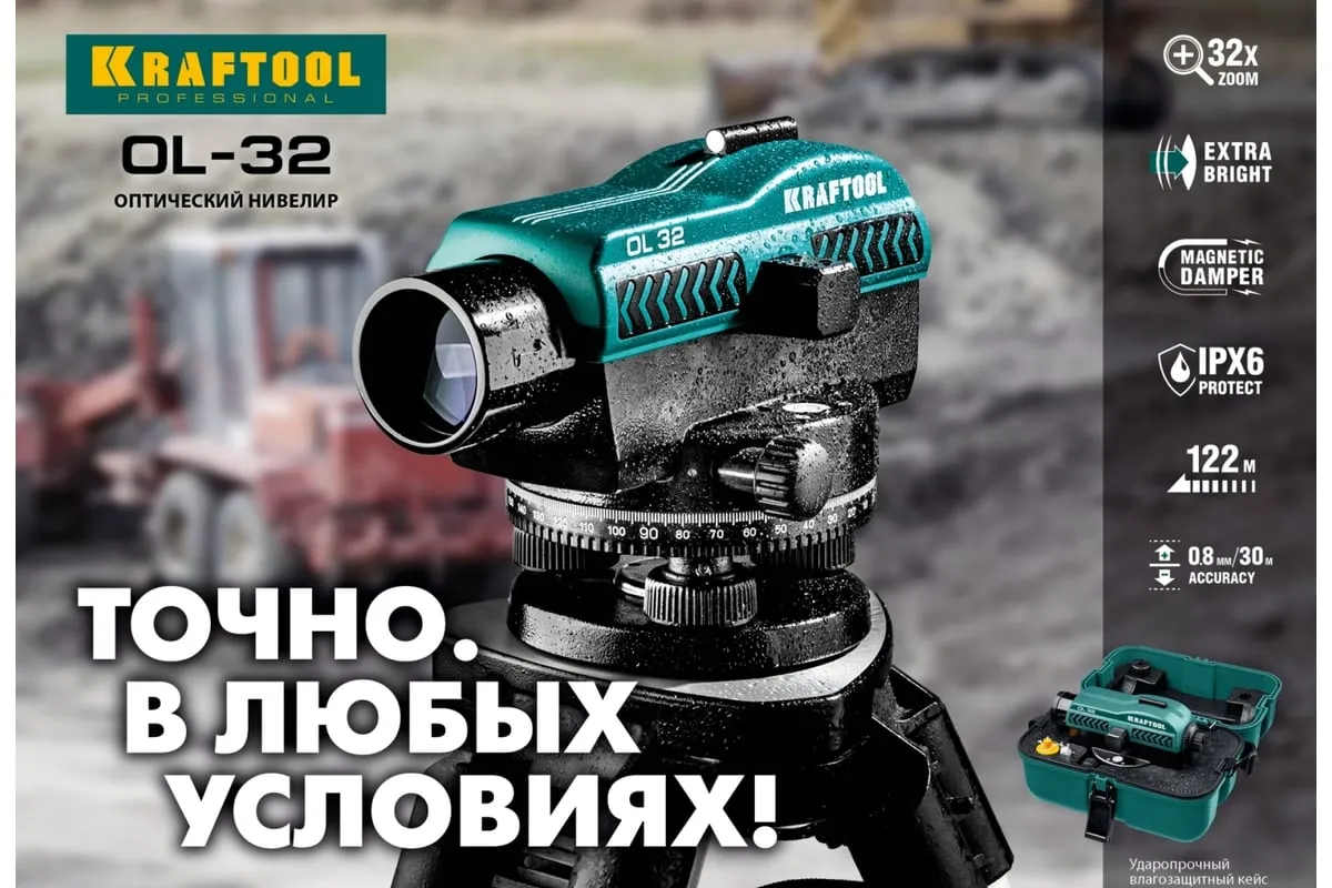 Оптический нивелир KRAFTOOL OL-32 34520 широко используется при строительных работах, в сфере геодезии и проектирования. Рабочий диапазон составляет 100 метров. Прочный корпуснадежно защищен от пыли и влаги(IPX6). 32-кратное увеличение и просветленная оптика обеспечиваютотличную видимость. Положение прибора относительно горизонтаплавно регулируетсяпри помощи опорных винтов.