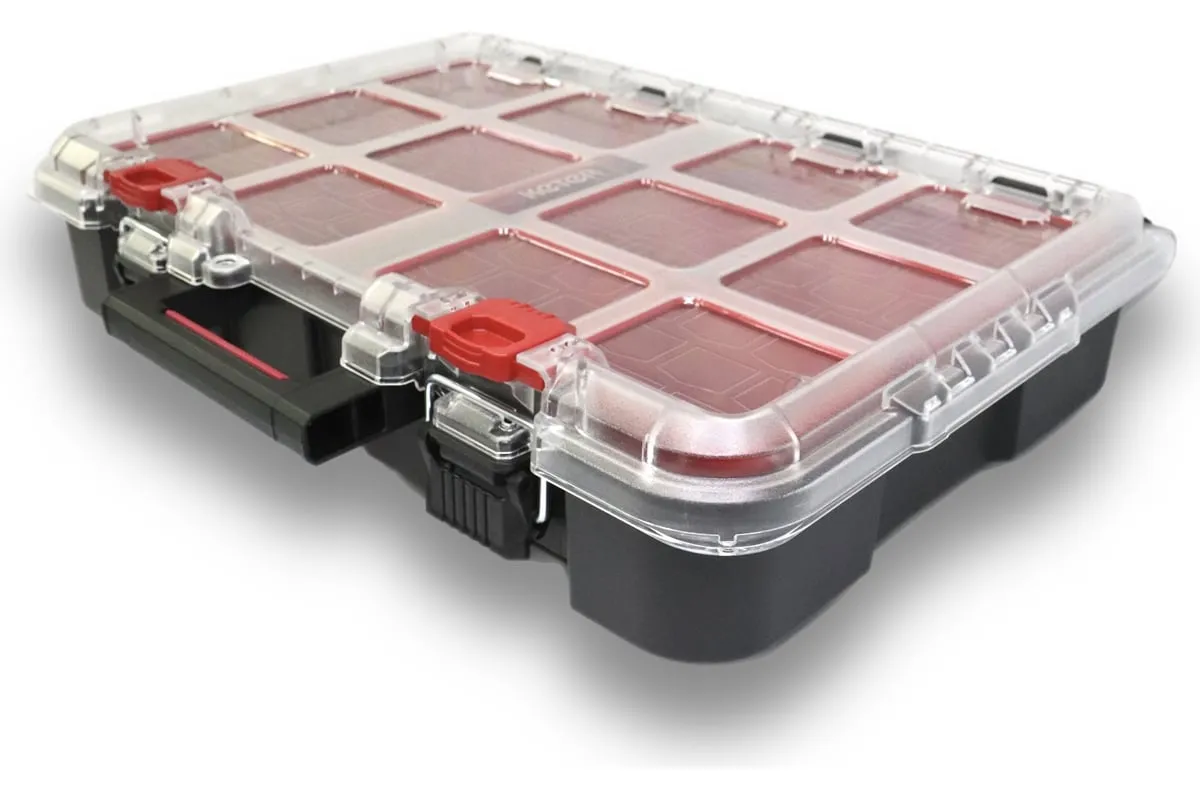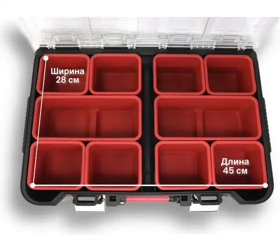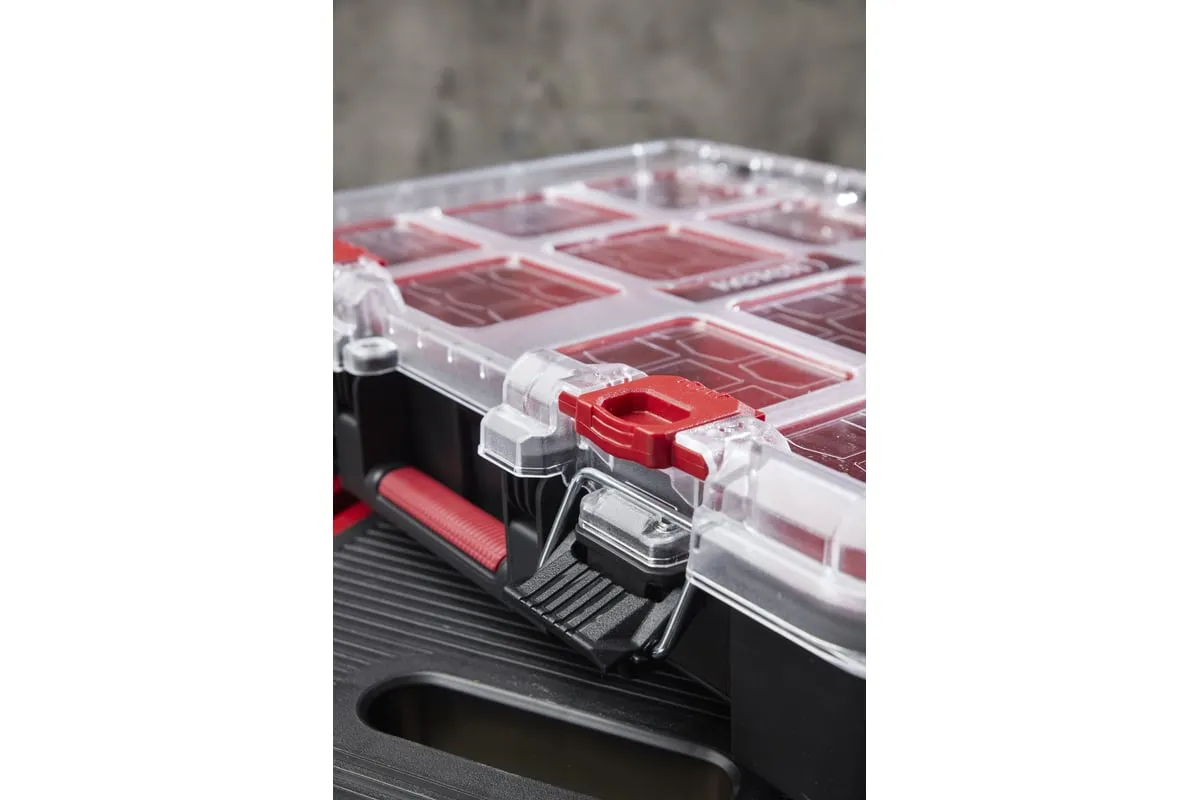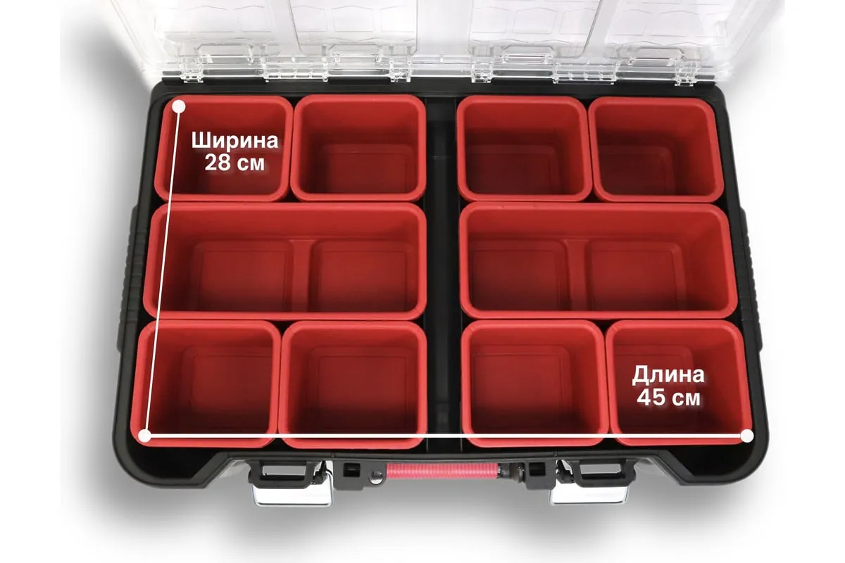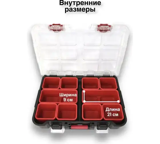 Небольшой органайзер оснащен прозрачной крышкой и съёмными лотками. Особенности Является частью системы Stack System.