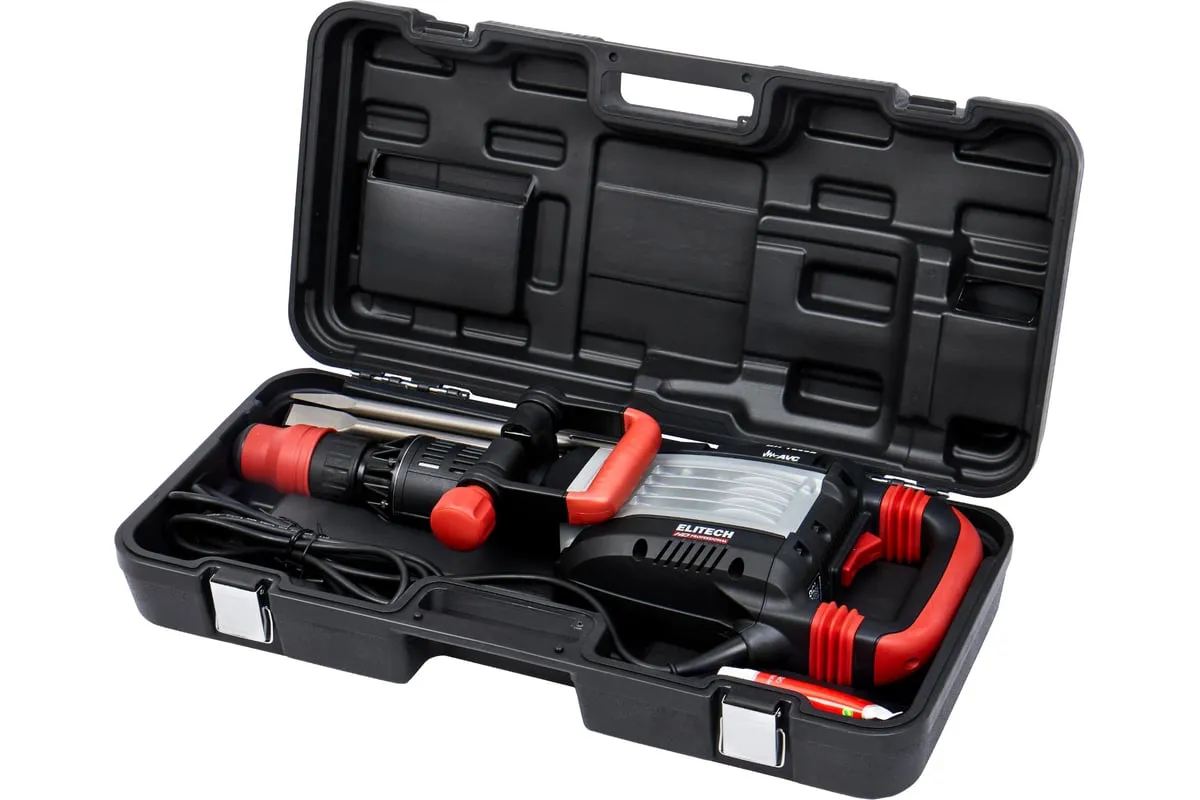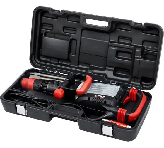 Электрический отбойный молоток ELITECH HD DH 1629E мощностью 1650 Вт и энергией удара 5-29 Дж предназначен для дробления и раскалывания твердых материалов (бетон, дорожные покрытия, кирпич, штукатурка, природный и искусственный камень), штробления пазов и каналов, проделывания проемов в стенах из кирпича и бетона и других строительно-монтажных работ с использованием соответствующей оснастки. В качестве рабочих насадок с отбойным молотком могут использоваться пика или зубило.