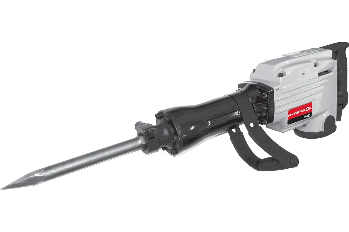 Отбойный молоток Интерскол М-25/1500В 530.0.0.00 предназначен для разрушения бетонных и кирпичных сооружений, пробивания стен, разбивания асфальта. Компрессионно-вакуумный ударный механизм и безбойковая система обеспечивают большую энергию удара - 25 Дж. Обрезиненные рукоятки - для удобной работы с инструментом.