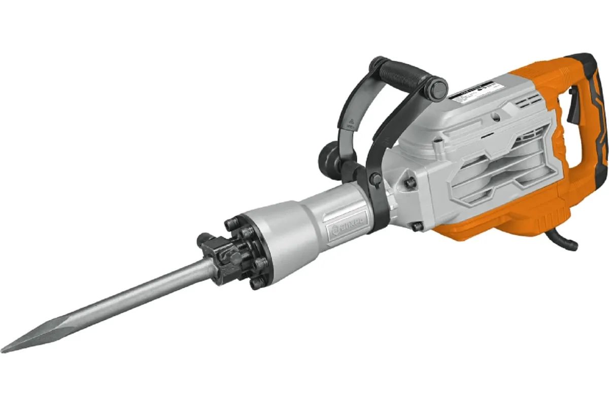 Эргономичная форма корпуса дополнена удобной рукояткой. Надежный хват обеспечивает комфорт при длительной работе, контроль над инструментом и высокую производительность. Устройство оснащено 2 м кабелем питания. Для удобства хранения и перемещения предусмотрен пластиковый кейс. Пика, зубило и тюбик со смазкой в комплекте.